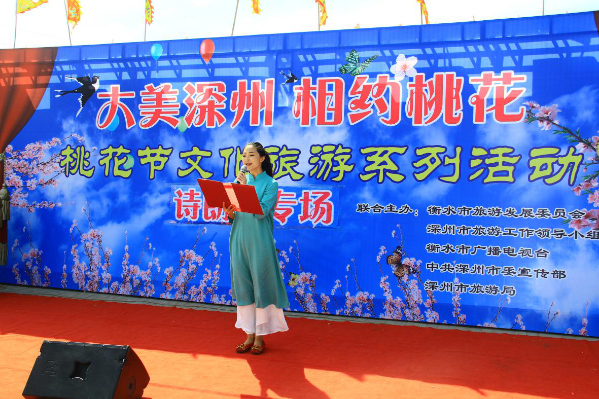 4月份,桃花节期间在清辉头村举办了以“大美深州相约桃乡”为主题的诗文朗诵会。活动长达1个半小时,共14个节目,演出参演人员共计 50 人,观众500余人。通过此次活动,拉近朗诵艺术与普通大众的距离,丰富了深州桃花节的文化内涵,让各地来深州的游者感受浓浓诗情,体验深州文化之美。